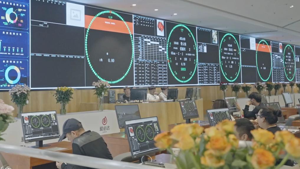 記者在昆明國(guó)際花卉拍賣交易中心看到,拍賣大鐘界面顯示著各種花卉的信息,數(shù)百名購(gòu)買商操作著競(jìng)價(jià)器選購(gòu)鮮花。昆明國(guó)際花卉拍賣交易中心副總經(jīng)理汪洋介紹,這里每天的鮮花交易量都超700萬(wàn)枝,單日最高交易量超1100萬(wàn)枝,30%以上的鮮花被各大電商和直播團(tuán)隊(duì)拍下,他們?cè)倌玫诫娚唐脚_(tái)或直播間銷售。