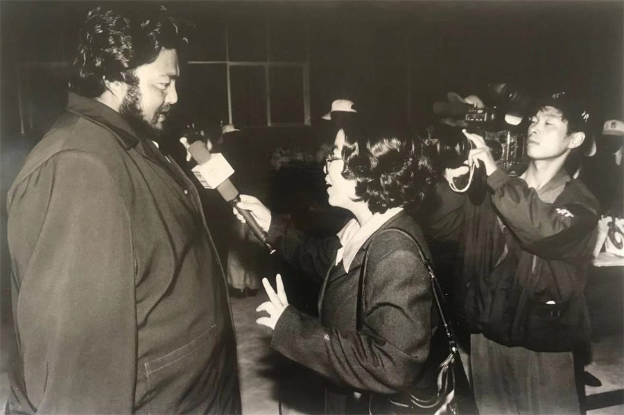 1999年澤玉(左二)參加第六屆全國少數(shù)民族傳統(tǒng)體育運動會報道時的工作照。澤玉供圖
