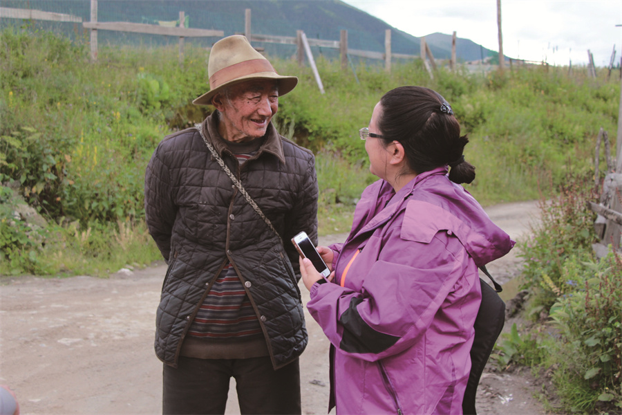 澤玉(右)在林芝市巴宜區(qū)魯朗鎮(zhèn)扎西崗村做調(diào)研。沈耀 攝