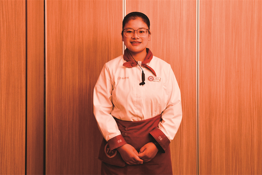 在拉薩海底撈工作的格桑卓嘎。趙振宇 攝