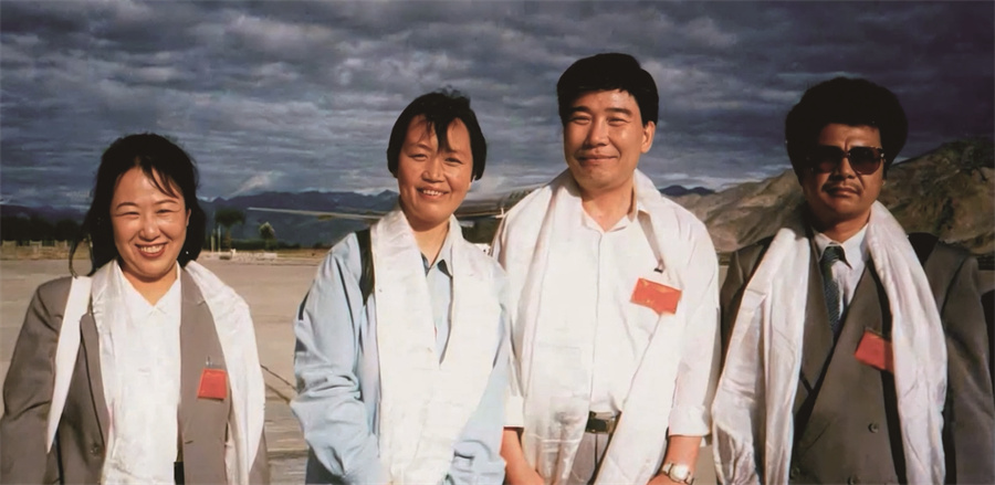 雷菊芳(左二)1995年隨中國(guó)民營(yíng)科技實(shí)業(yè)家光彩事業(yè)赴藏考察團(tuán)進(jìn)藏考察。受訪者供圖