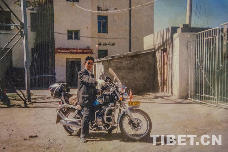圖為嘎瑪在給記者展示當(dāng)年修路的照片。