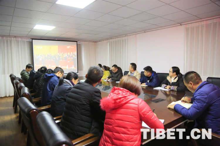 圖為郫都區(qū)援藏工作隊(duì)集中觀看現(xiàn)場(chǎng)