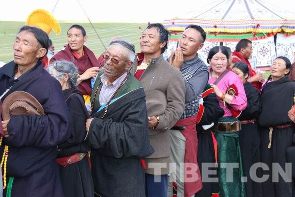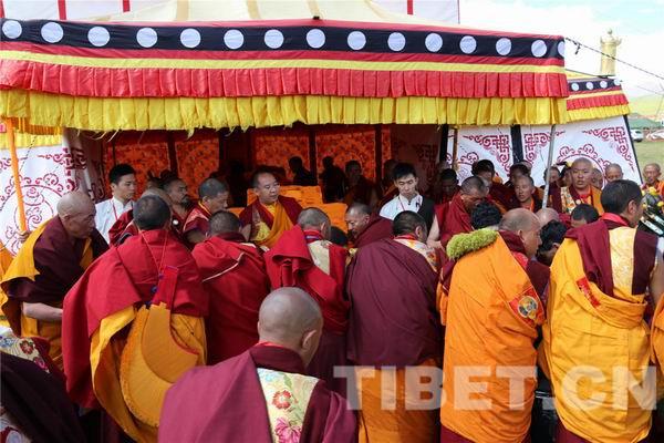 7月19日,班禪在玉樹州雜多縣貢薩寺舉行完法事后,中午就來到寺前的扎西灘,為信教群眾摸頂賜福。原計劃,信教群眾前來接受班禪大師的講經(jīng)灌頂和摸頂應于下午6點結(jié)束。但實際上在進行完長壽經(jīng)祈愿灌頂后,已下午3點半,為了能讓所有的信教群眾都受到祝福,在班禪的堅持下,為將近2萬信教群眾一個一個摸頂?shù)搅送砩?點多,加上灌頂法會,整個活動持續(xù)了整整8個多小時。班禪在灌頂法會和摸頂儀式中,不斷說的一句話就是:“我已經(jīng)祈愿祝福了你們!我已經(jīng)祈愿祝福了你!愿幸福和安康生生世世伴隨?!?/p>