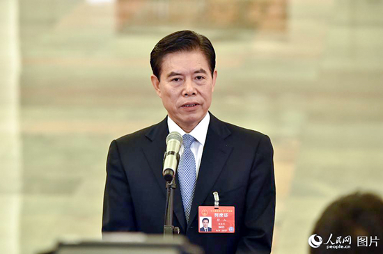 商務(wù)部部長鐘山回答記者提問。人民網(wǎng)記者 翁奇羽 攝