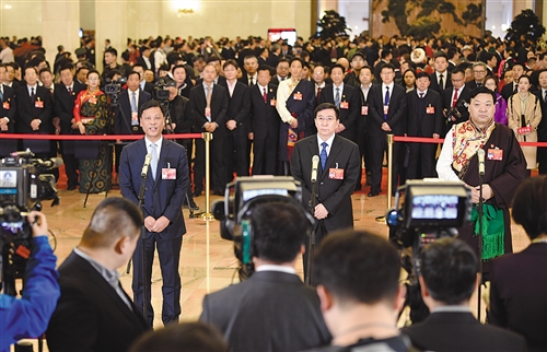 3月15日,十三屆全國(guó)人大二次會(huì)議第三場(chǎng)“代表通道”集體采訪活動(dòng)舉行。