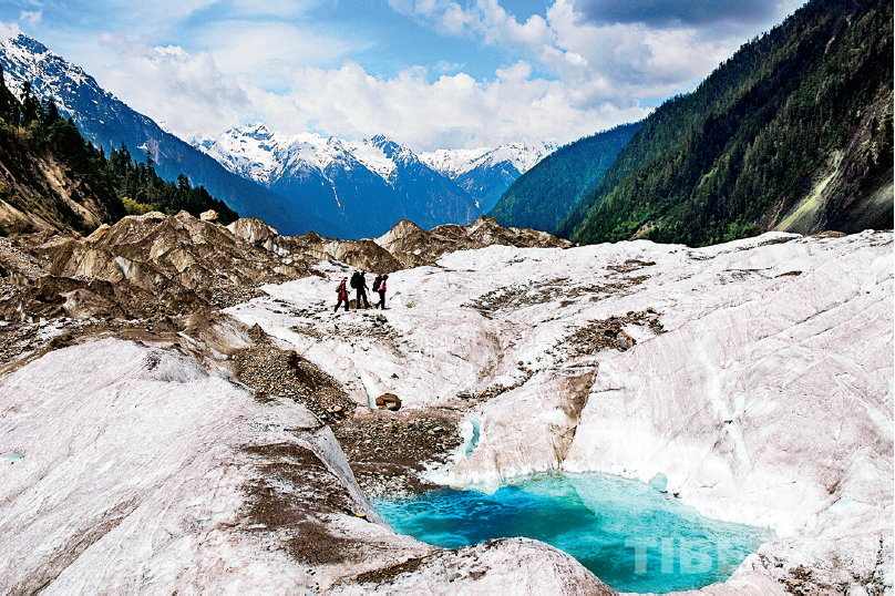 藏東南密集的海洋性冰川成為青藏高原研究所重點(diǎn)監(jiān)測地區(qū)。圖為楊威博士帶隊(duì)前往帕隆4號(hào)冰川