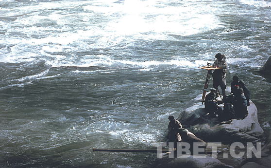 在雅魯藏布江面測量流速 郭長福/攝影