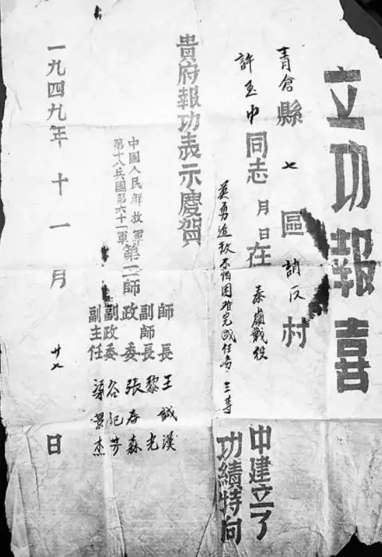 與此同時,河北滄州傳來消息:許玉忠烈士的親屬找到了,還找到一份立功報喜證書。