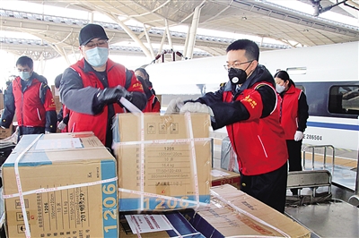 在突擊隊為生命接力的日子里,曾有兩名醫(yī)療隊隊員不小心將自己的隨身背包落在了車上。列車已經(jīng)開走了,突擊隊隊員聞訊馬上聯(lián)系列車長,待東西找到后,再通過第二天的過路火車帶回武漢,并轉(zhuǎn)送到醫(yī)療人員的手里。賈青青說:“我們的目標(biāo)是一致的,那就是為武漢加速。他們?yōu)榛颊叻?wù),我們就為他們服務(wù)。”