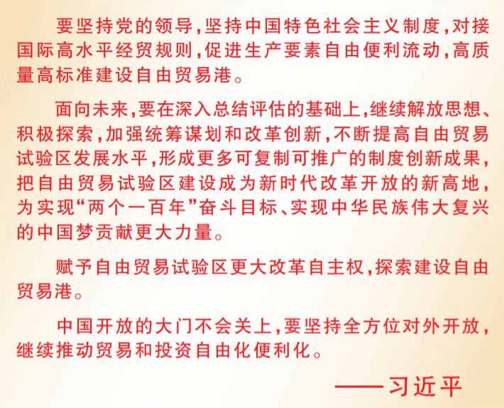 “建設(shè)自由貿(mào)易試驗區(qū)是黨中央在新時代推進(jìn)改革開放的一項戰(zhàn)略舉措,在我國改革開放進(jìn)程中具有里程碑意義。”