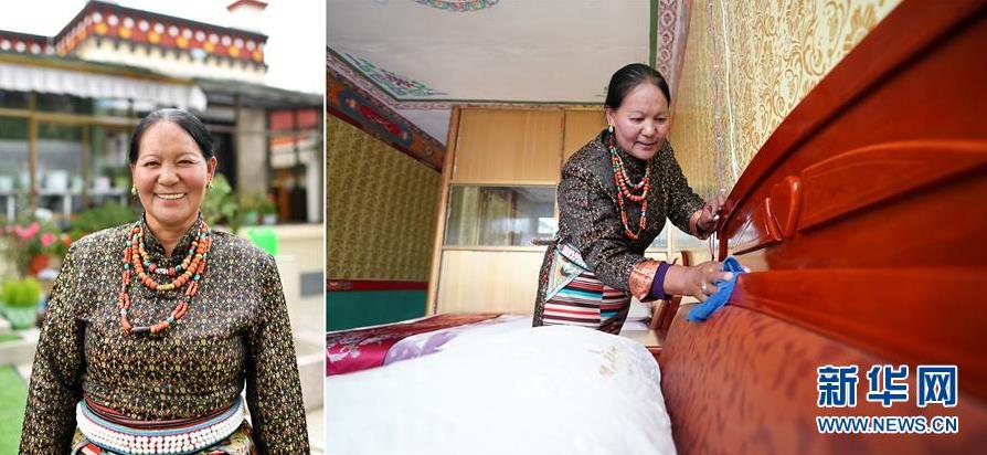 拼版照片:左圖為西藏阿里地區(qū)札達縣札布讓村村民金珠德吉在自家的家庭旅館;右圖為金珠德吉在家庭旅館里打掃衛(wèi)生。古格王國遺址坐落于札布讓村境內(nèi)。近年來,隨著札達縣“旅游興縣”政策的推進,當(dāng)?shù)卮迕袂山琛扒旯鸥駳v史”大做文化旅游文章,每年吸引眾多游客前來參觀,金珠德吉就勢經(jīng)營起家庭旅館?,F(xiàn)在,金珠德吉的家庭旅館已有30多個床位,因設(shè)施完善、衛(wèi)生良好還被村里評為“金星級”家庭旅館。見到金珠德吉的家庭旅館生意火爆,村民們紛紛效仿。如今,這個只有36戶144人的小村莊有32戶人家都開了家庭旅館(7月26日攝)。 新華社記者 詹彥 攝
