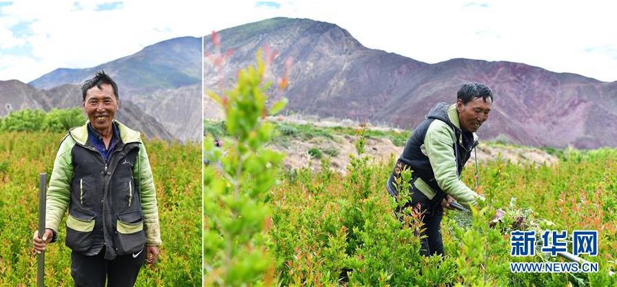 拼版照片:左圖為西藏昌都市芒康縣納西民族鄉(xiāng)加達村村民土登曲培;右圖為土登曲培在芒康縣納西民族鄉(xiāng)三江農(nóng)民專業(yè)合作社的苗圃里忙碌。幾年前,土登曲培來到三江農(nóng)民專業(yè)合作社打工,負(fù)責(zé)種樹和喂牛,每月有3000多元的收入(5月4日攝)。 新華社記者 詹彥 攝