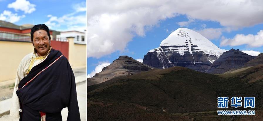 拼版照片:左圖為西藏阿里地區(qū)普蘭縣巴嘎鄉(xiāng)崗莎村村民崗瑪達杰;右圖為位于西藏阿里地區(qū)普蘭縣境內(nèi)的岡仁波齊峰。崗莎村地處海拔6656米的岡仁波齊峰腳下。近年來,前來岡仁波齊峰轉(zhuǎn)山旅游的游客與日俱增,崗莎村借此大力發(fā)展旅游業(yè),為游客提供吃、住、行、游、購等服務(wù)。每到旅游旺季,崗瑪達杰為游客提供騎馬轉(zhuǎn)山、運輸服務(wù),一年下來有4萬多元的收入(7月27日攝)。 新華社記者 詹彥 攝