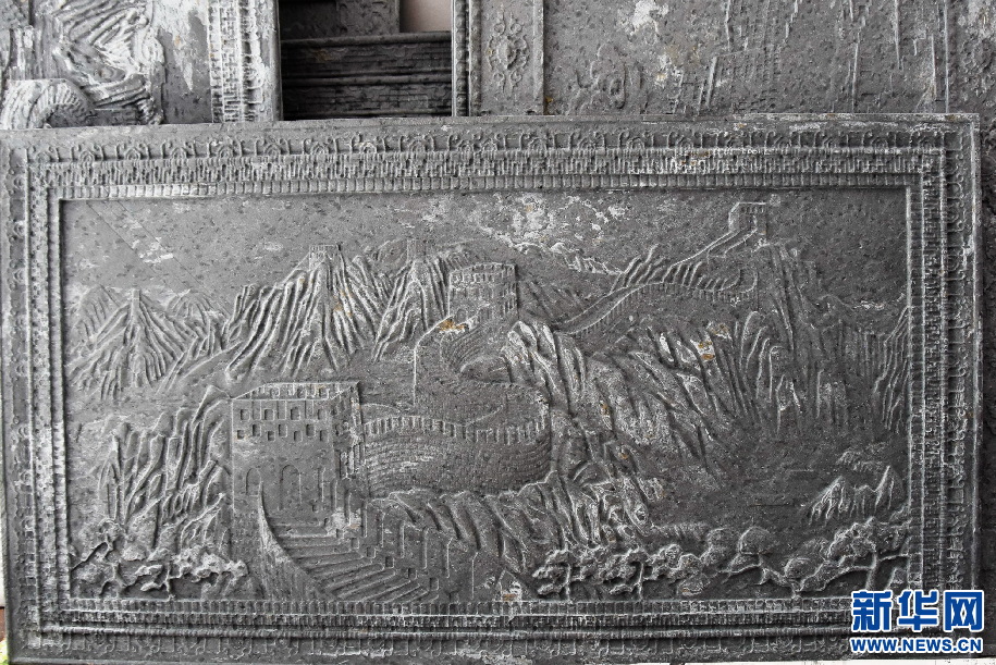 刻有萬里長城還未上色的工藝品(9月16日攝)。新華網(wǎng) 張宸攝