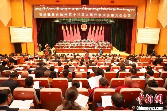 圖為青海省玉樹藏族自治州第十三屆人民代表大會(huì)第六次會(huì)議現(xiàn)場?!“?攝