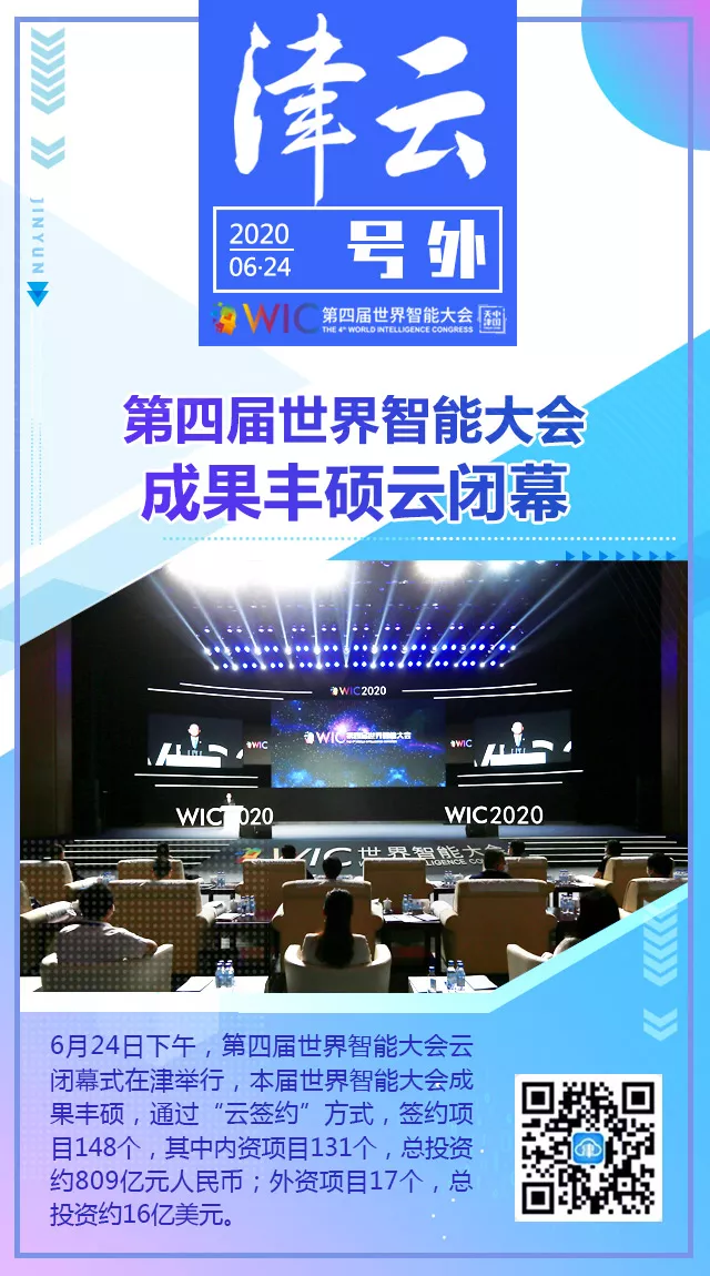 6月24日下午,第四屆世界智能大會云閉幕式在津舉行。