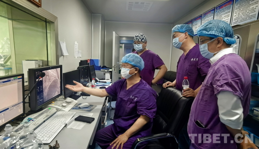圖為陰赪茜趕赴阿壩州人民醫(yī)院手術(shù)救治急性心?;颊撸聊簧巷@示出患者心臟血管多處問題嚴(yán)重 攝影:劉莉