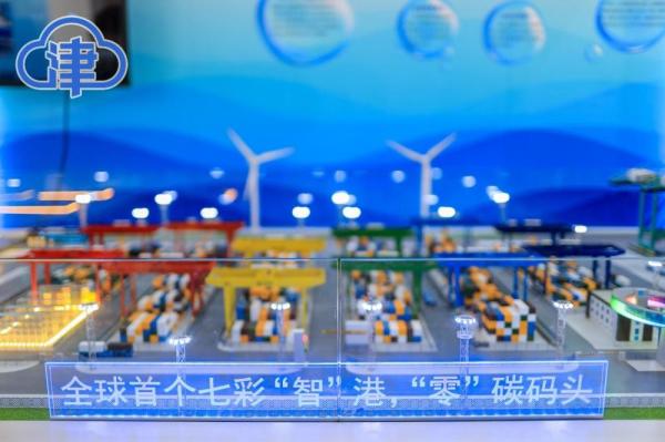 在科技感十足的天津港展臺(tái)前,天津港c段智能集裝箱碼頭的全景沙盤吸引了大家的目光?!斑@是全球首個(gè)‘智慧零碳’碼頭,標(biāo)志著天津港集團(tuán)努力打造世界一流的智慧港口、綠色港口有了最新重大成果,將以全新模式引領(lǐng)世界港口智能化升級(jí)和低碳發(fā)展?!碧旖蚋奂瘓F(tuán)展區(qū)工作人員高曉坤告訴記者。