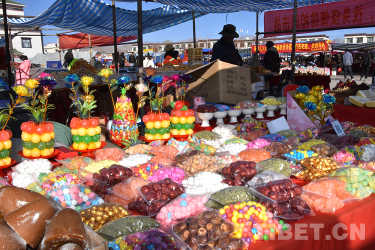 中國(guó)西藏網(wǎng)訊 伴隨著藏歷新年的悄然臨近,西藏各地處處洋溢著節(jié)日的喜慶氛圍。西藏自治區(qū)山南市天馬國(guó)際商業(yè)中心,切瑪盒、卡塞、酥油花等琳瑯滿目的年貨供應(yīng)充足,選購(gòu)年貨的市民絡(luò)繹不絕,是一場(chǎng)紅紅火火的熱鬧景象的“年貨節(jié)”。