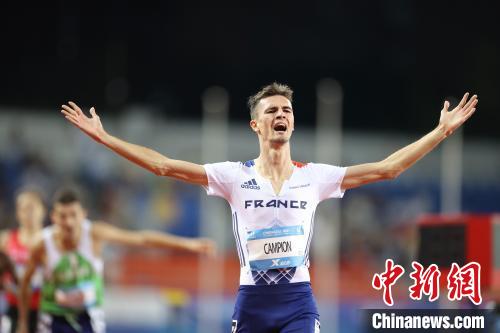 8月3日,成都大運(yùn)會男子1500米決賽中,法國隊(duì)選手坎皮恩獲得冠軍。 中新社記者 蔣啟明 攝