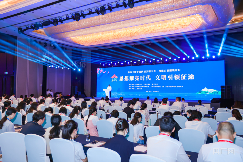 7月18日,2023年中國網(wǎng)絡(luò)文明大會網(wǎng)絡(luò)內(nèi)容建設(shè)論壇在福建省廈門市舉行。本次論壇以“思想耀亮時代 文明引領(lǐng)征途”為主題,旨在強化網(wǎng)絡(luò)空間思想引領(lǐng),守正創(chuàng)新做好黨的創(chuàng)新理論網(wǎng)上傳播,扎實推進網(wǎng)絡(luò)文明建設(shè)。世界互聯(lián)網(wǎng)大會秘書長、中國網(wǎng)絡(luò)社會組織聯(lián)合會會長任賢良,人民日報社副總編輯徐立京,新華社副社長劉健,福建省政府副省長、黨組成員,福建省公安廳黨委書記、廳長李建成,廈門大學黨委書記張榮出席論壇并致辭。