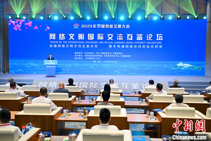 7月18日,2023年中國網(wǎng)絡文明大會網(wǎng)絡文明國際交流互鑒論壇在廈門舉辦。圖為論壇現(xiàn)場。中新社記者 王東明 攝