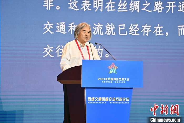 7月18日,2023年中國網(wǎng)絡文明大會網(wǎng)絡文明國際交流互鑒論壇在廈門舉辦。圖為絲綢之路考古合作研究中心首席科學家王建新作主題演講。中新社記者 王東明 攝