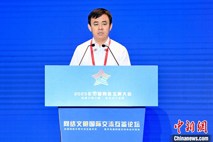 7月18日,2023年中國網(wǎng)絡文明大會網(wǎng)絡文明國際交流互鑒論壇在廈門舉辦。圖為山東省日照市委副書記王新生作主題演講。中新社記者 王東明 攝