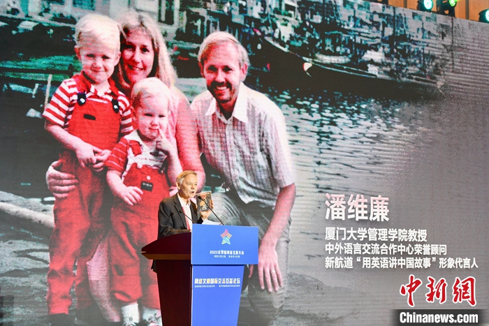7月18日,2023年中國網(wǎng)絡文明大會網(wǎng)絡文明國際交流互鑒論壇在廈門舉辦。圖為廈門大學美籍教授潘維廉作主題演講。中新社記者 王東明 攝