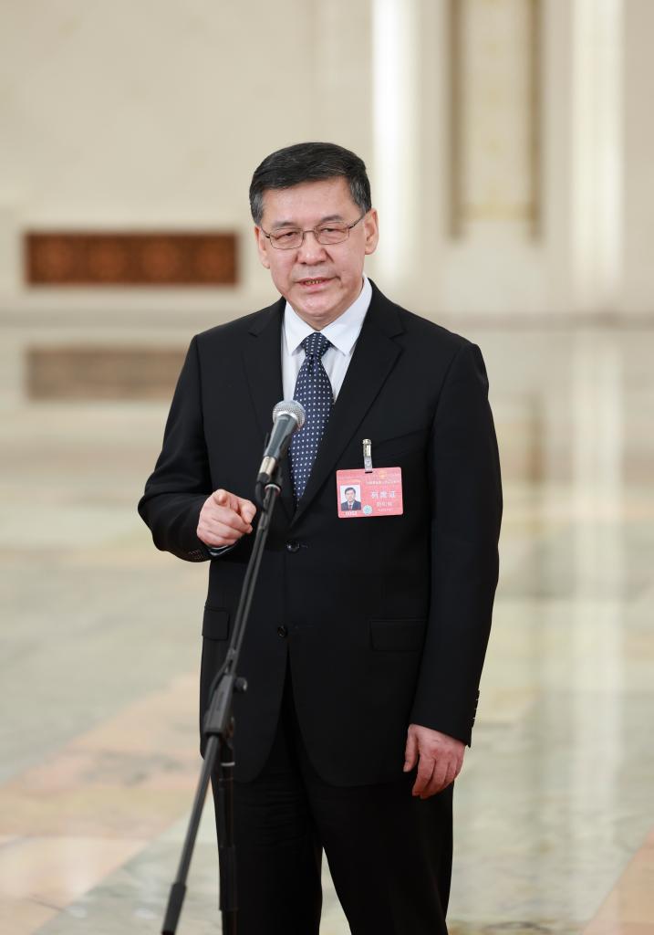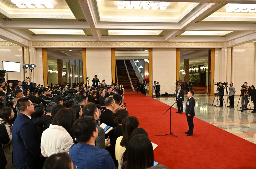 3月5日,第十四屆全國人民代表大會(huì)第二次會(huì)議首場“部長通道”集中采訪活動(dòng)在北京人民大會(huì)堂舉行。這是水利部部長李國英接受媒體采訪。新華社記者 劉續(xù) 攝
