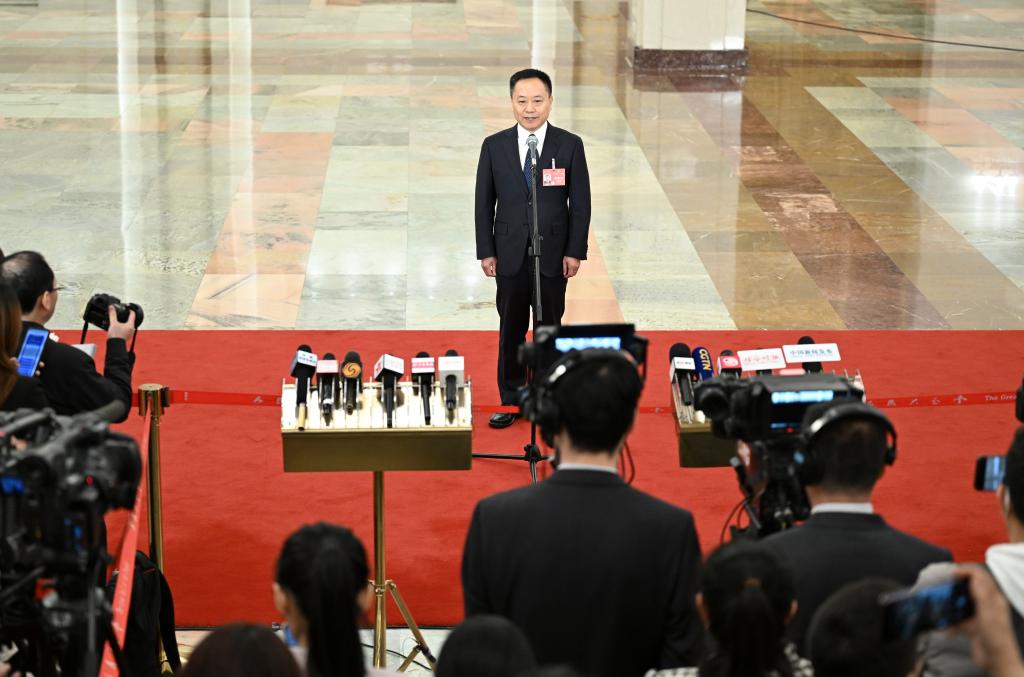 3月5日,第十四屆全國人民代表大會(huì)第二次會(huì)議首場“部長通道”集中采訪活動(dòng)在北京人民大會(huì)堂舉行。這是水利部部長李國英接受媒體采訪。新華社記者 牟宇 攝