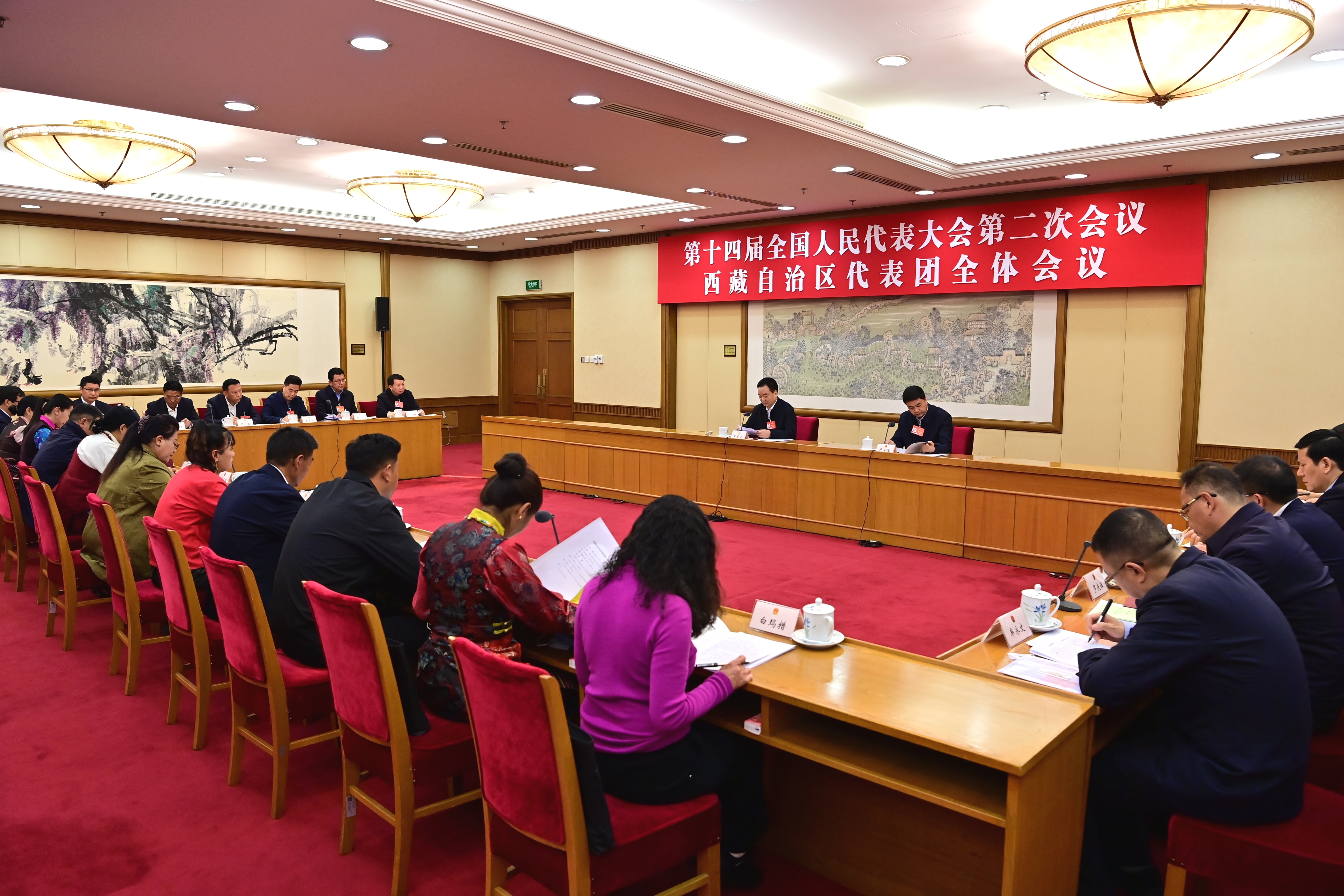 經過表決,會議推選王君正為十四屆全國人大二次會議西藏代表團團長,嚴金海、王永祥為副團長。會議審議了十四屆全國人大二次會議主席團和秘書長名單草案、大會議程草案。