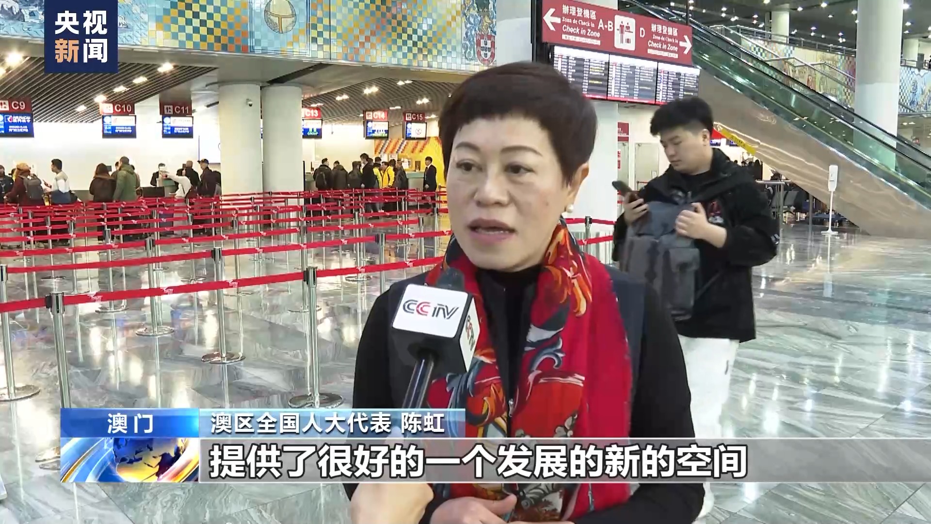澳區(qū)全國(guó)人大代表 陳虹:國(guó)家給了澳門(mén)很好的發(fā)展的機(jī)遇跟平臺(tái),提供了很好的一個(gè)發(fā)展的新的空間,特別是深合區(qū),粵港澳大灣區(qū),為澳門(mén)居民更好地融入國(guó)家發(fā)展大局提供了這么好的空間。