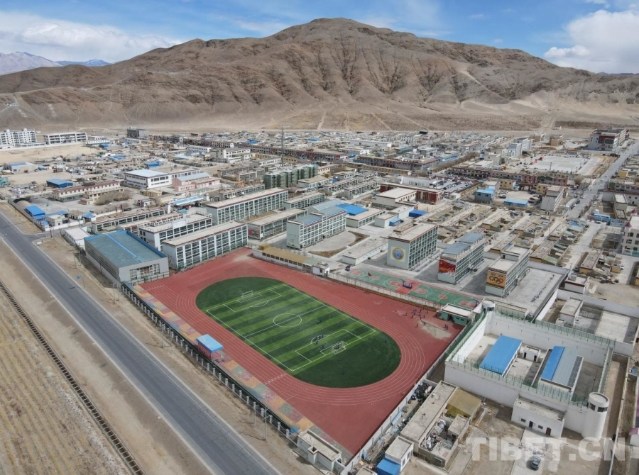 圖為河北援建的日土縣九年一貫制學(xué)校運(yùn)動(dòng)場(chǎng)