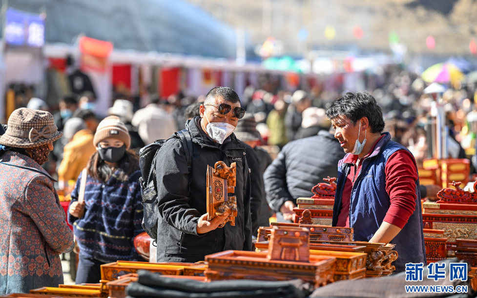 12月1日,市民在西藏自治區(qū)山南市第45屆雅礱物資交流會(huì)現(xiàn)場(chǎng)挑選商品。新華網(wǎng) 旦增努布 攝