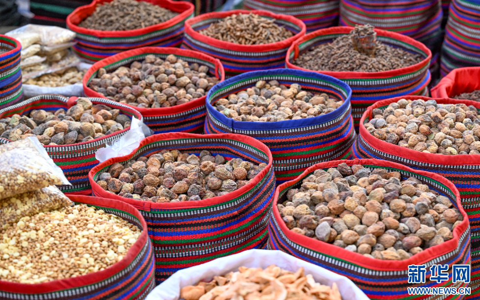 12月1日拍攝的西藏自治區(qū)山南市第45屆雅礱物資交流會(huì)上當(dāng)?shù)爻霎a(chǎn)的干果。新華網(wǎng) 旦增努布 攝