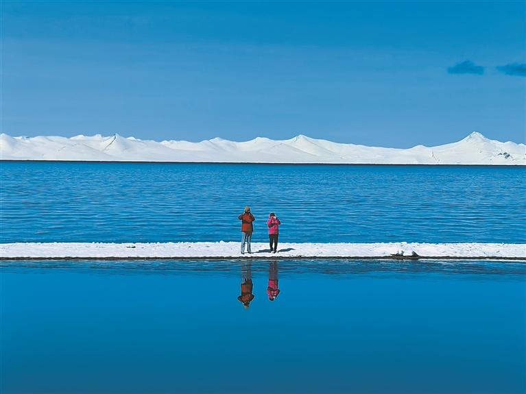 國慶中秋假期,山南市浪卡子縣普莫雍錯景區(qū)迎來旅游高峰。雪后初霽的湖面如藍寶石般鑲嵌在群山之間,以雄渾壯闊的自然之美震撼人心。