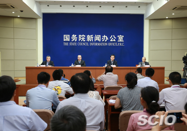 新聞發(fā)布會主席臺(張馨 攝) 圖片來源:國務(wù)院新聞辦公室官網(wǎng)