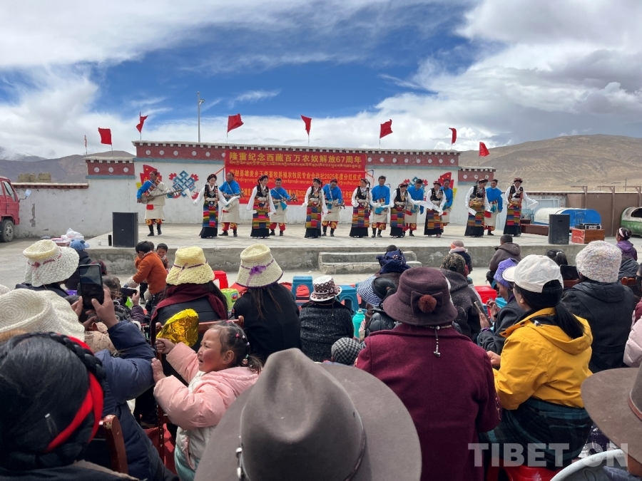 活動現(xiàn)場,當(dāng)?shù)馗刹咳罕姽餐仡櫸鞑孛裰鞲母?7年來的滄桑巨變,講述在黨的堅強領(lǐng)導(dǎo)下,雄麥鄉(xiāng)農(nóng)牧民從脫貧致富到依托合作社實現(xiàn)共同增收的幸福歷程。隨后,當(dāng)?shù)夭貞蜿?、文藝隊帶來精彩表演,用獨具民族特色的文藝形式歌頌黨的好政策,展現(xiàn)新時代農(nóng)牧民的精神風(fēng)貌。
