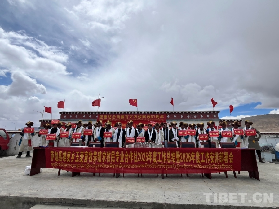中國西藏網(wǎng)訊 3月28日,西藏日喀則市薩迦縣雄麥鄉(xiāng)舉行紀(jì)念西藏民主改革67周年暨2025年度玉麥畜牧養(yǎng)殖農(nóng)牧民專業(yè)合作社分紅儀式。