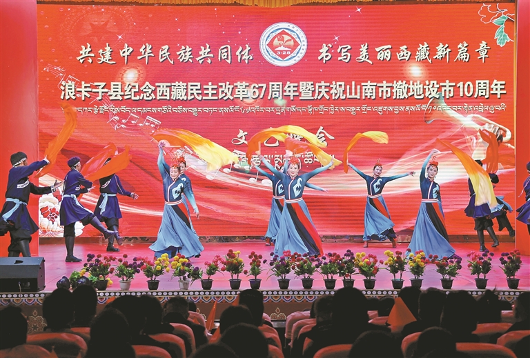浪卡子縣舉辦紀(jì)念西藏民主改革67周年暨慶祝山南市撤地設(shè)市10 周年文藝演出活動(dòng)。